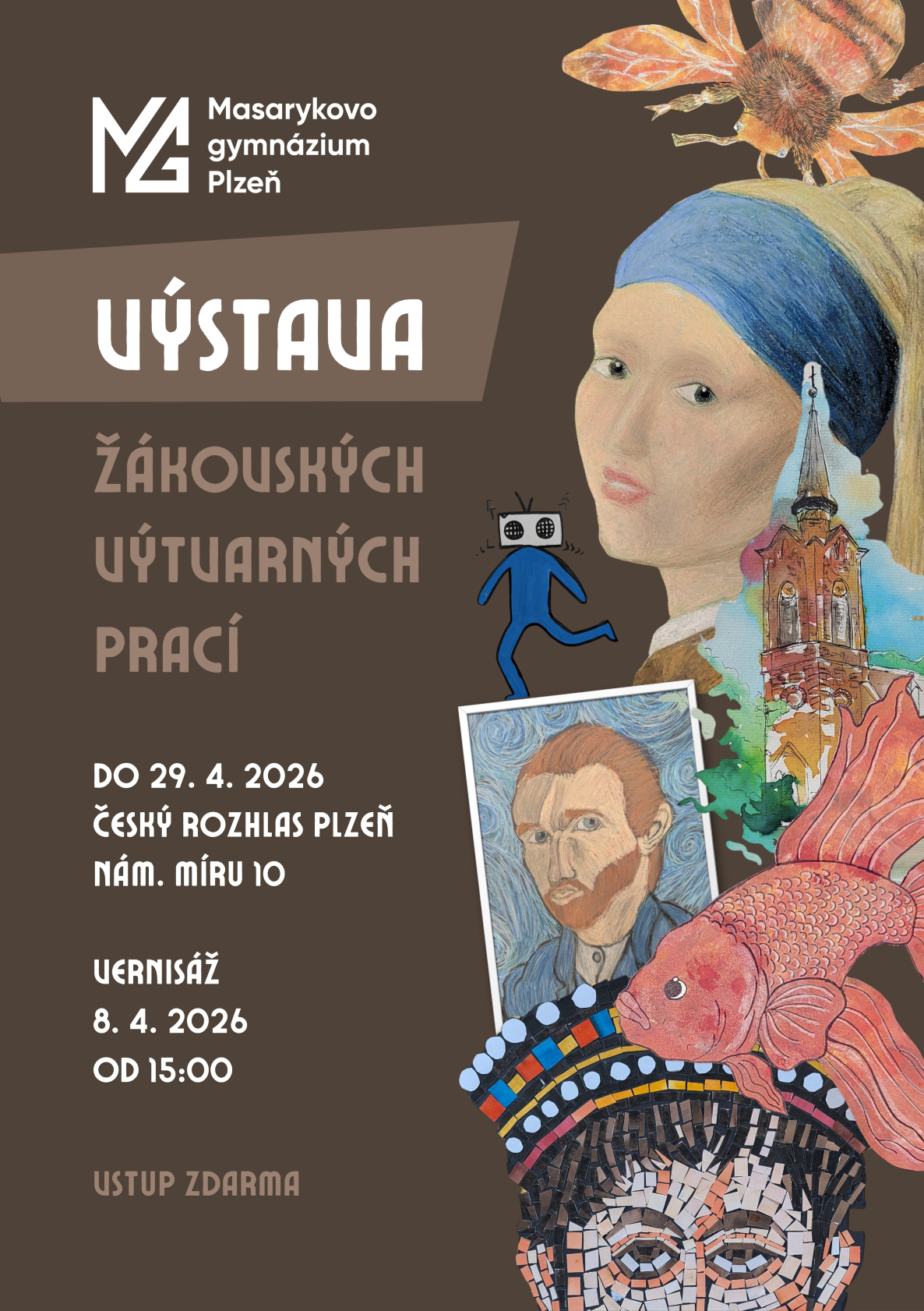 Srdečně zveme na vernisáž výstavy výtvarných prací našich žáků, která se koná dne 8. dubna 2026 v 15 h. ve vstupní hale Českého rozhlasu na náměstí Míru v Plzni. Pokud nestihnete slavnostní zahájení výstavy, můžete si přijít výstavu prohlédnout až do 29. dubna. Těšíme se na Vaši návštěvu.