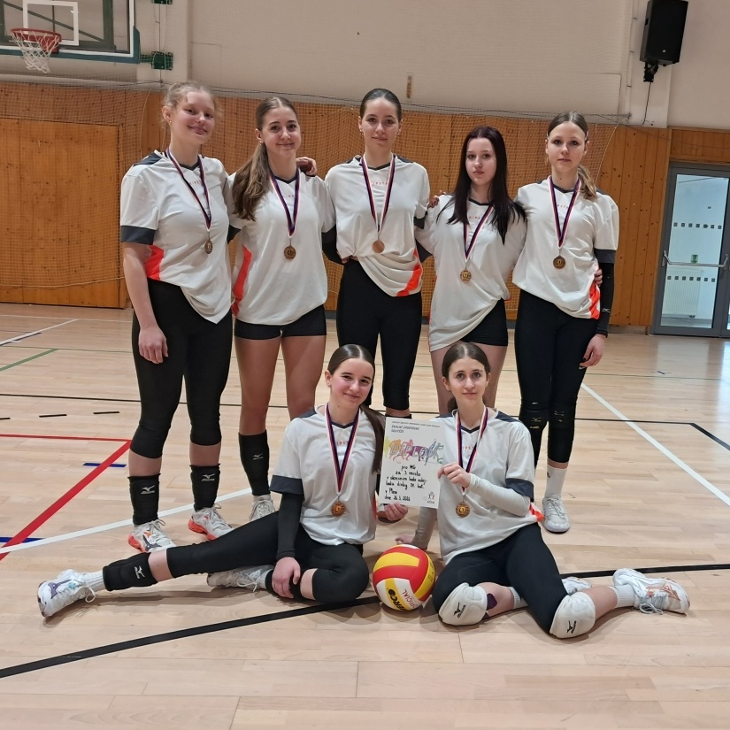 Dne 26. 3. 2026 proběhlo v městské hale Lokomotiva okresní kolo ve volejbalu dívek základních škol a víceletých gymnázií. Sešlo se celkem 10 škol a naše dívky vybojovaly medailové 3. místo. Děvčatům uniklo úplné finále opravdu o malý kousek, ale nakonec ještě zmobilizovaly síly na poslední utkání s GLP o 3. místo a vyhrály ho! Gratulujeme a děkujeme za reprezentaci školy. Děvčata nastoupila v tomto složení: Markéta Jarošíková (TB), Agáta Slobodina (TB), Beáta Žáčková (KAA), Petra Raiskupová (KAA), Eliška Hazdrová (KAA), Lucie (Tomanová) a Sofie Šejvarová (TB).