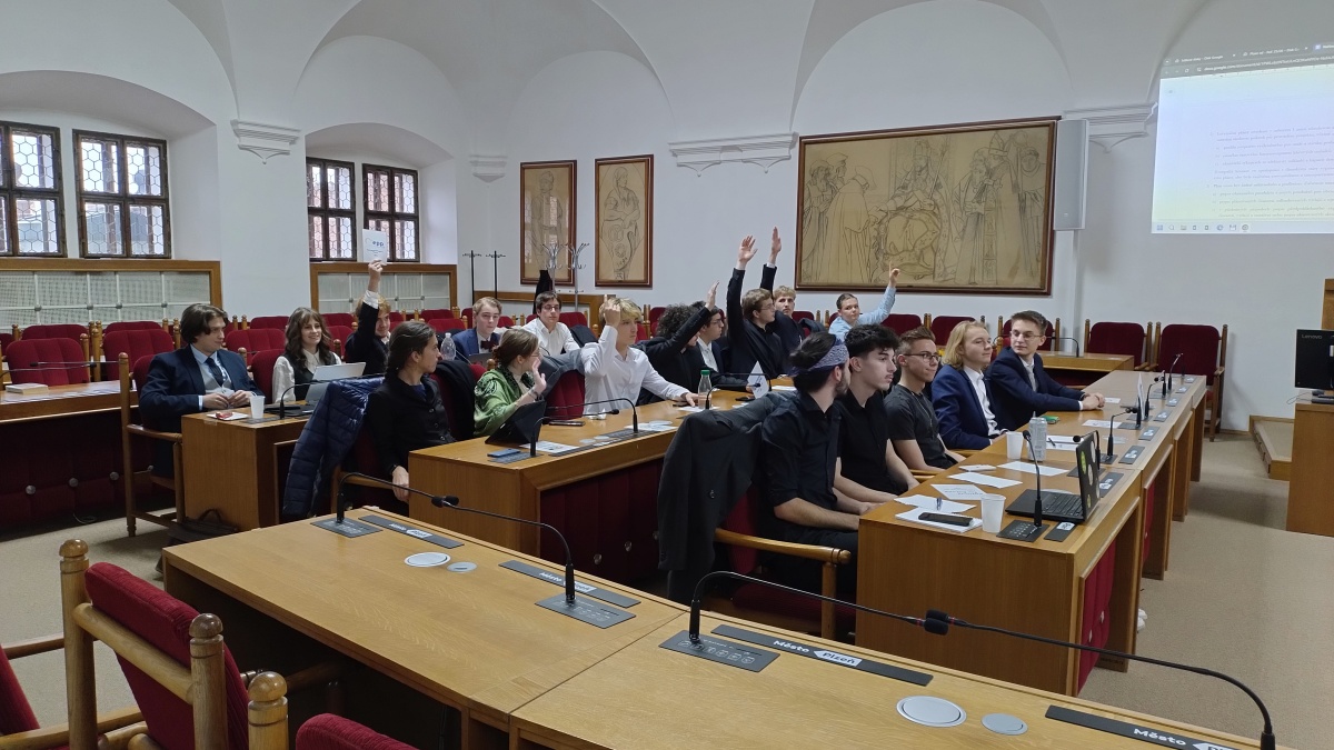 Ve středu 12. 11. 2025 se někteří studenti 3. A a septimy B našeho gymnázia zúčastnili modelového zasedání Evropského parlamentu a Evropské rady v rámci projektu Rozhoduj o Evropě. První část dne se týkala schvalování úprav nástroje SAFE Evropským parlamentem a Evropskou radou. V druhé části společně zasedly obě složky a debatovaly o dalších schvalovacích procesech. Studenti získali nové zkušenosti a vědomosti v oblasti fungování Evropské unie.