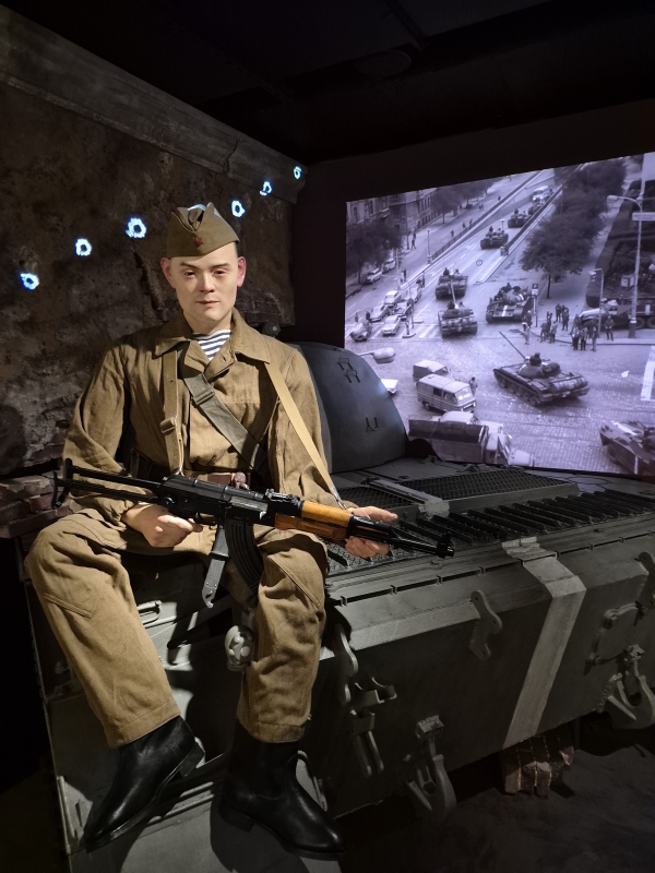 Dále si studenti prohlédli expozice nedalekého Armádního muzea Žižkov, které živým a interaktivním způsobem přibližuje české a československé dějiny (nejen vojenské) od raného středověku až po současnost.