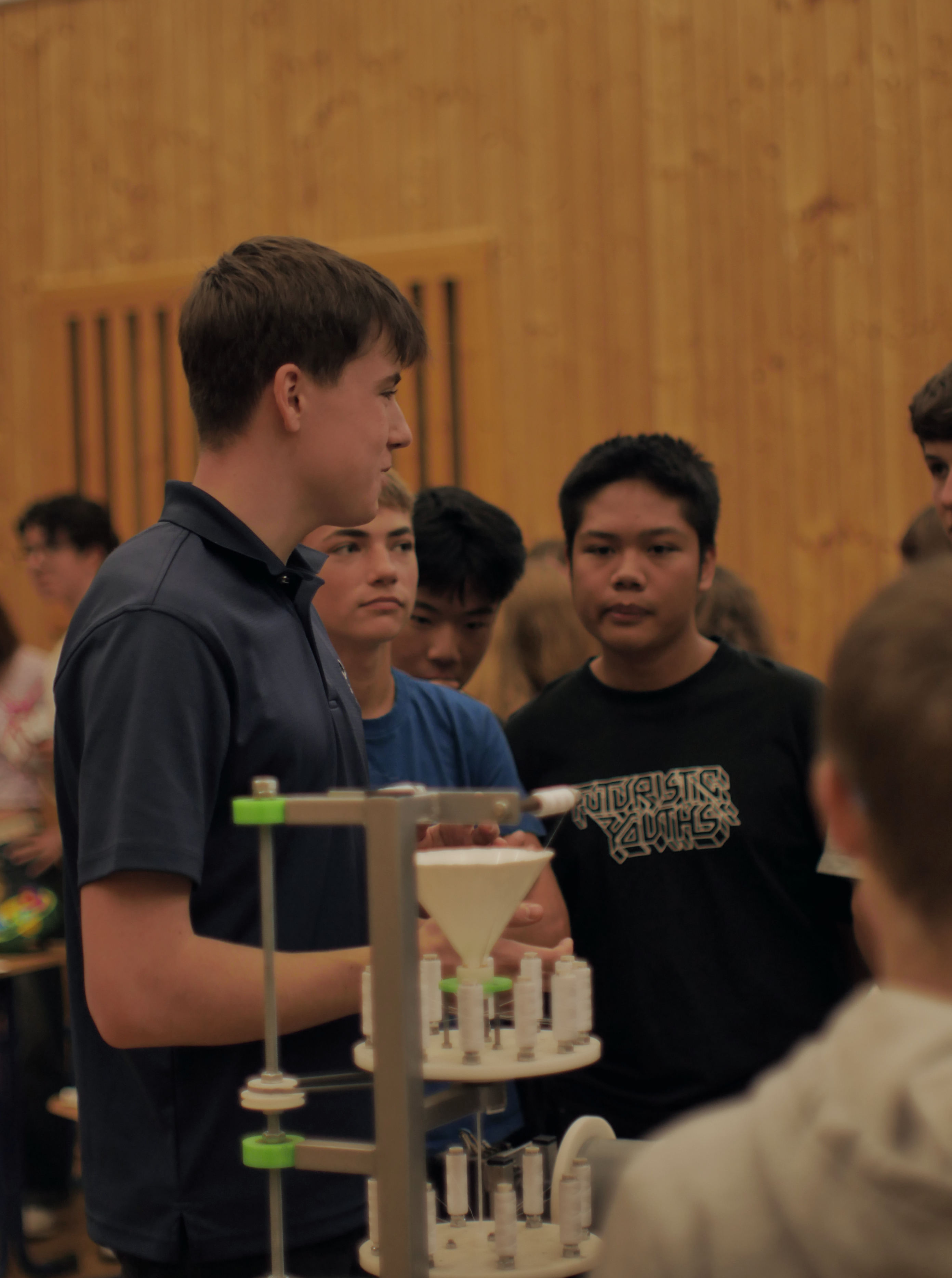 V pátek 12. 9. 2025 proběhla akce „Poznej (nejen) Masarykáč“. Tělocvična se proměnila v prostor pro diskusi a přátelský hovor mezi zkušenými žáky vyššího gymnázia a žáky kvint a prvních ročníků čtyřletého gymnázia.