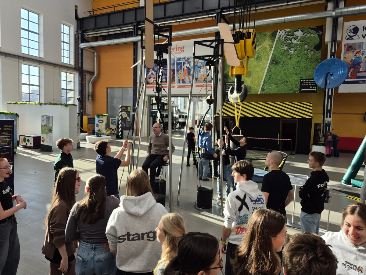 Po skončení dopolední výuky zašli naši hosté společně s žáky kvinty B na oběd do školní jídelny a následně jsme se přesunuli do Techmanie, kde si všichni mohli vyzkoušet interaktivní expozice a experimenty a zároveň tím poznat, jak důležitou roli v Plzni hraje rozvoj techniky a průmyslu. Na závěr dne jsme ještě krátce prošli centrum Plzně, prohlédli jsme si model historického centra v mázhausu radnice a navštívili jsme katedrálu sv. Bartoloměje. Návštěva proběhla v mimořádně příjemné a přátelské atmosféře. Věříme, že setkání bylo přínosné nejen pro naše hosty, ale i pro naše žáky, kteří měli možnost procvičit si němčinu a navázat nové kontakty.