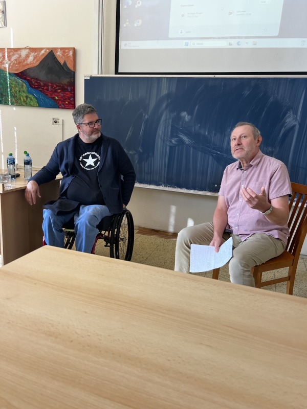 Ve středu 24. září 2025 proběhla již čtvrtá přednáška pro veřejnost z cyklu, který jsem nazvala Otevřená literatura. Tentokrát jsme se podívali do světa Karla Poláčka, nechali se okouzlit jeho literárním humorem a také sledovali jeho životní cestu s nelehkým koncem v době druhé světové války. Děkuji všem, kteří se zúčastnili. Speciální dík patří mému kolegovi Petru Tesařovi a studentce 4. A Tereze Šavlové, kteří se mnou četli ukázky z děl Karla Poláčka. Příště chystáme přednášku, která ponese název Osvobozená dvojčata a bude se zaobírat Jiřím Voskovcem a Janem Werichem. Přednášku povede Petr Tesař a už teď se těšíme na další příjemný literární podvečer.
