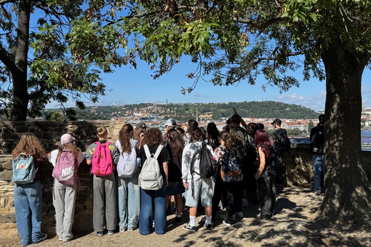 Ve čtvrtek 11. září 2025 žáci tercie A předvedli své dějepisné i jazykové schopnosti při anglicky vedeném vzdělávacím programu „Hravý Vyšehrad“. Pod vedením průvodkyně, která s žáky komunikovala pouze v angličtině, se vydali po stopách pověstí z nejstarších českých dějin a stejně tak historii vyšehradských památek a budov. Předvedli nejen své znalosti z historie, ale především své dovednosti v anglickém jazyce, a při závěrečné týmové soutěži i svou schopnost spolupráce.