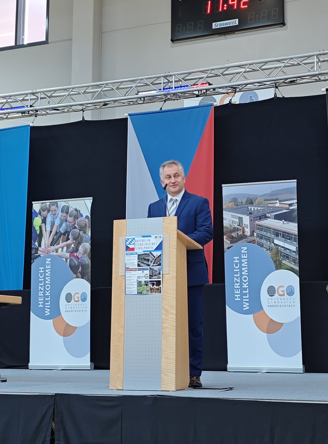 Ve středu 15. října 2025 se v bavorském městě Oberviechtach uskutečnila slavnostní událost, při níž Masarykovo gymnázium v Plzni společně s Gymnáziem J. Š. Baara v Domažlicích uzavřelo partnerské smlouvy s Ortenburským gymnáziem v Oberviechtachu. Slavnostního podpisu smlouvy se zúčastnili ředitelé a vyučující všech tří škol, český ministr školství Mikuláš Bek, zástupci bavorského Státního ministerstva školství a kultury, zástupci Generálního konzulátu České republiky v Mnichově a v neposlední řadě také všichni žáci nové partnerské školy. Událost doprovázelo vystoupení školního sboru, orchestru a big bandu.
